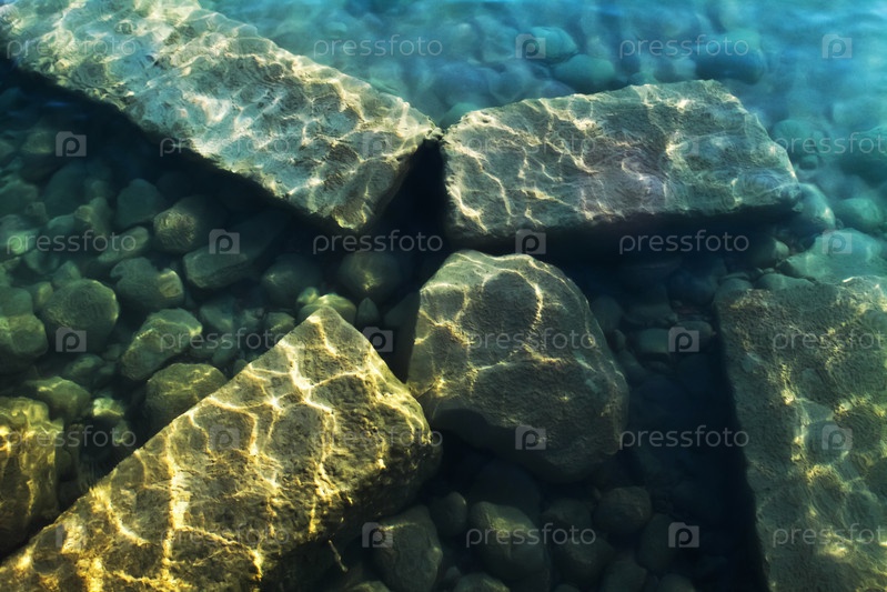 Камни под голубой водой в летний день