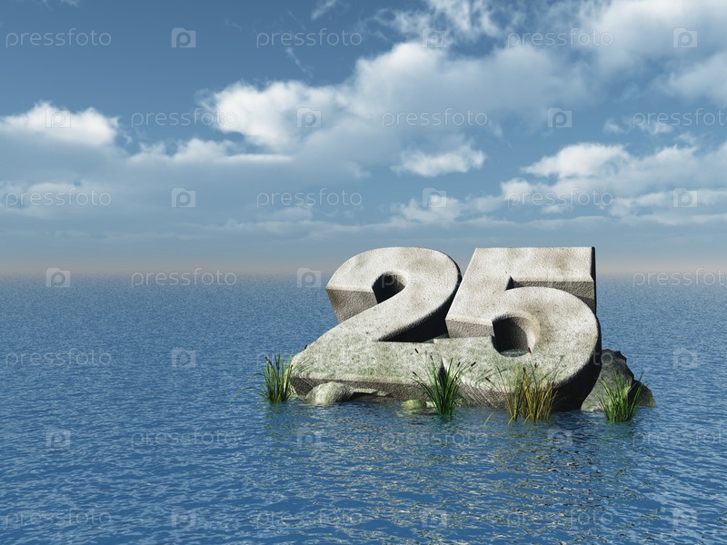 Цифра 25 в океане - 3D иллюстрация