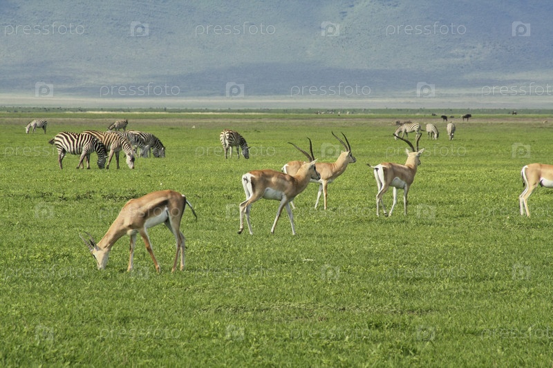 Танзания. Национальный парк Нгоронгоро. Газели, зебры