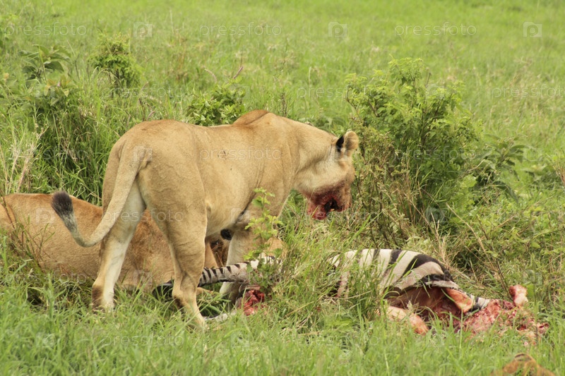 Танзания. Национальный парк Серенгети. Львы едят зебру