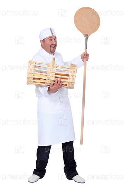 Пекарь с лопатой и корзинкой с хлебом