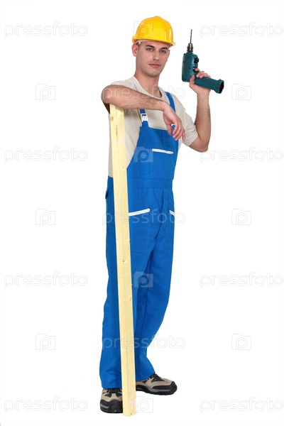Строитель с электрической дрелью