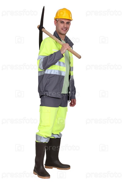 Портрет каменщика с киркой через плечо