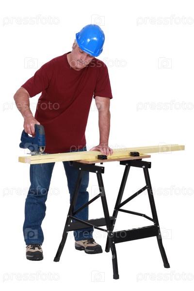 Плотник распиливает доски на станке