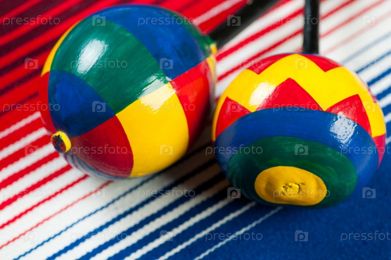 Два красочных маракаса на полосатом пончо