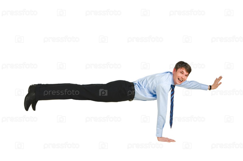 Фото мастера, стоящего на одной руке над белым фоном