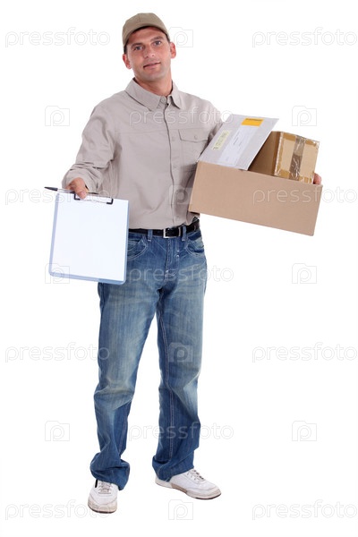 Курьер просит расписаться за доставку