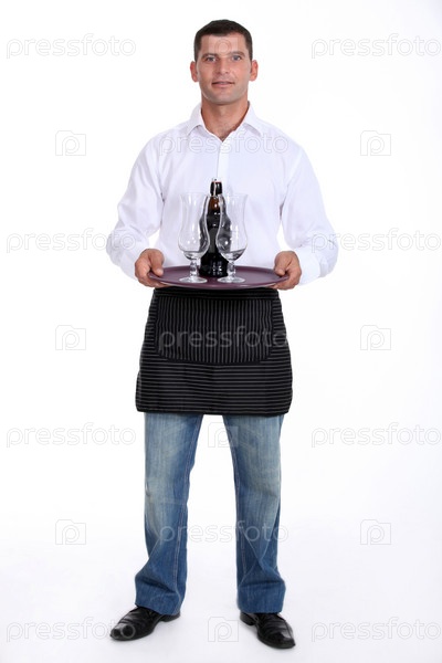 Официант держит поднос