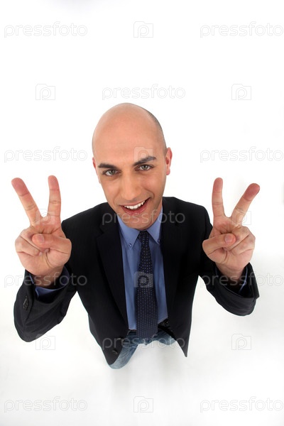 Мужчина показывает жест победы