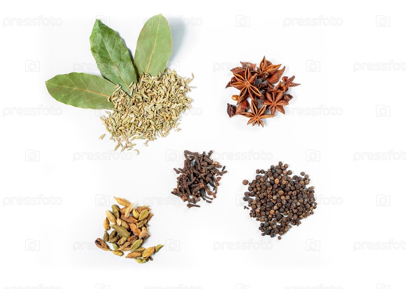 6 специй на белом фоне