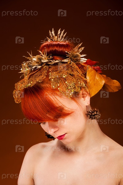Портрет рыжей девушки с роскошной прической и макияжем