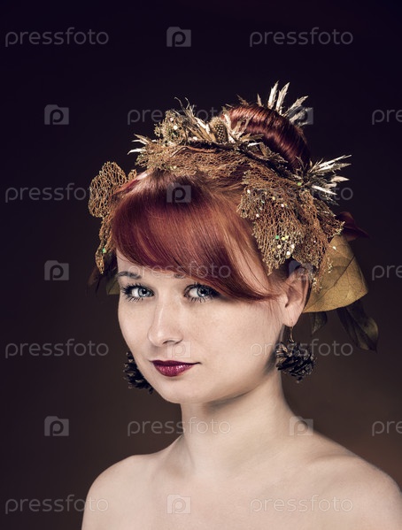 Портрет рыжей девушки с роскошной прической и макияжем