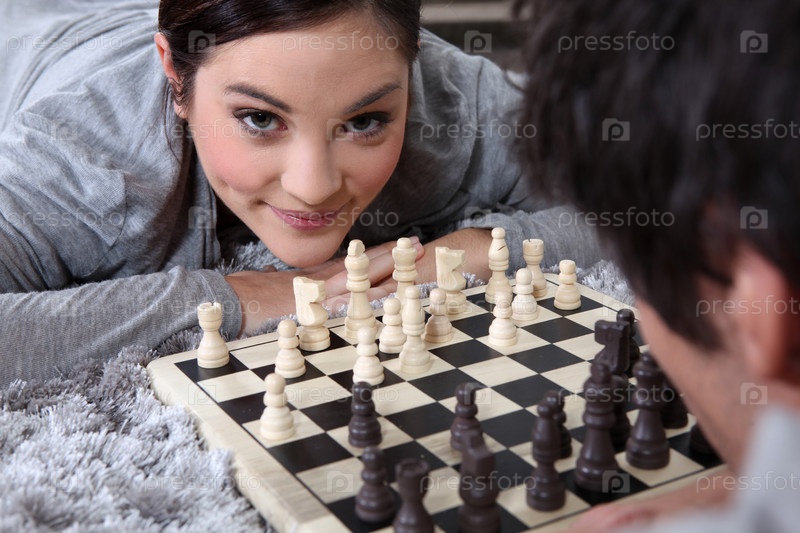 Молодая пара играет в шахматы