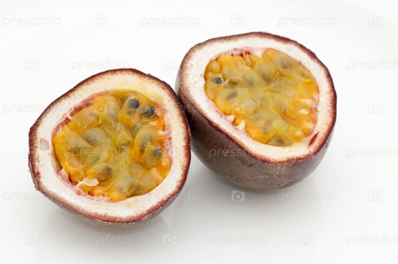 Разрезанная маракуйя на белом фоне