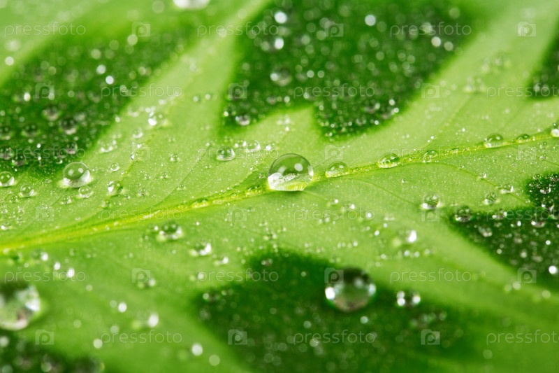Зеленый лист с каплями воды