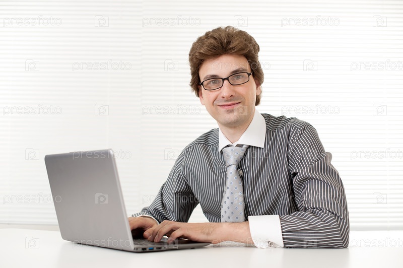 Деловой человек использует ноутбук в помещении