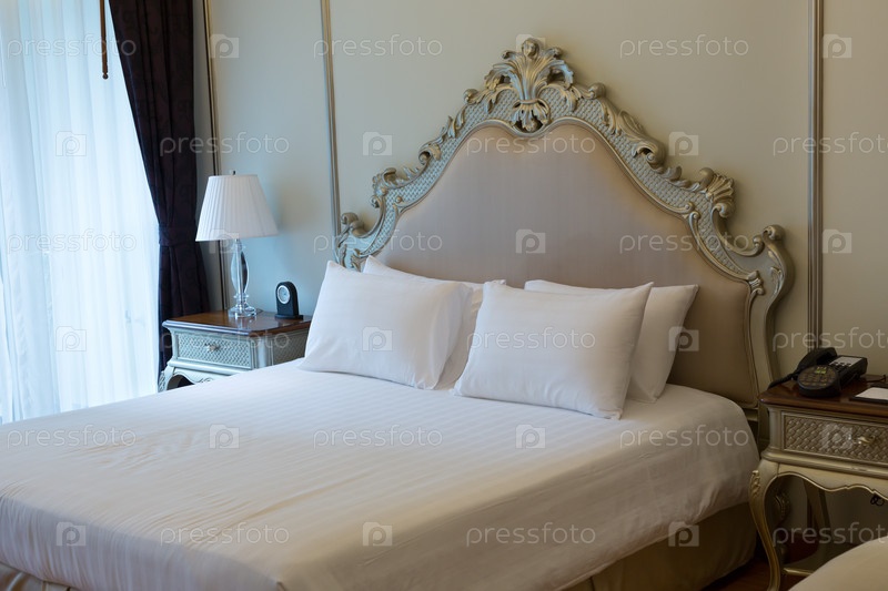 Двуспальная кровать в номере отеля