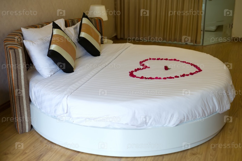 Кровать с лепестками роз для медового месяца