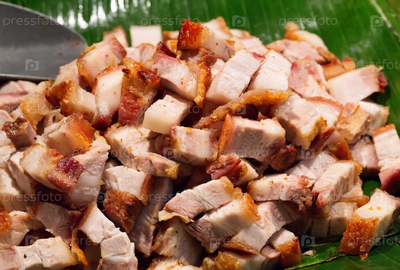 Нарезанное жаркое из свинины на пальмовом листе