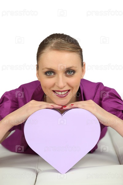Жизнерадостная девушка с коробкой в форме сердца