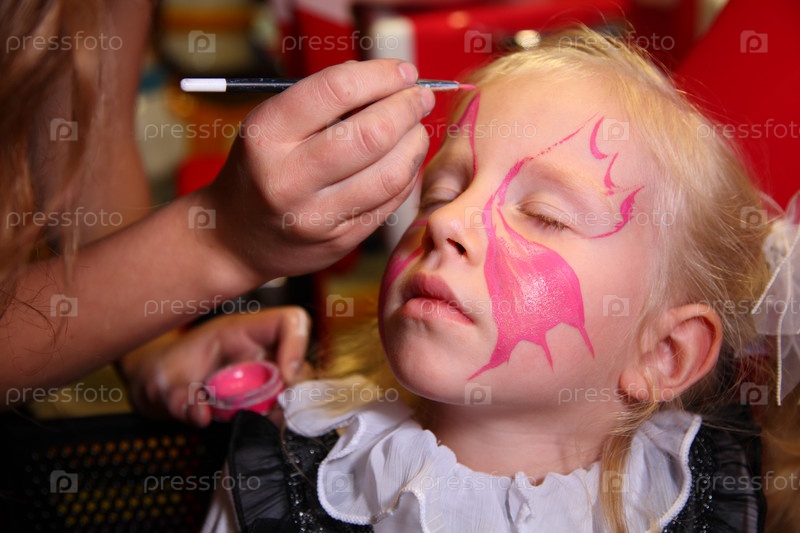 Нанесение карнавального макияжа на лицо девочки