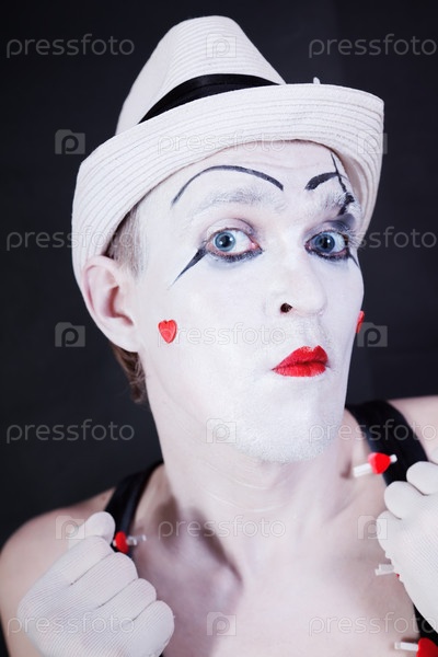 Театральный клоун в белой шляпе
