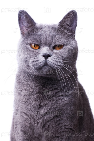 Серый короткошерстный британский кот с ярко-желтыми глазами