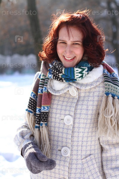 Портрет молодой женщины в зимнем парке