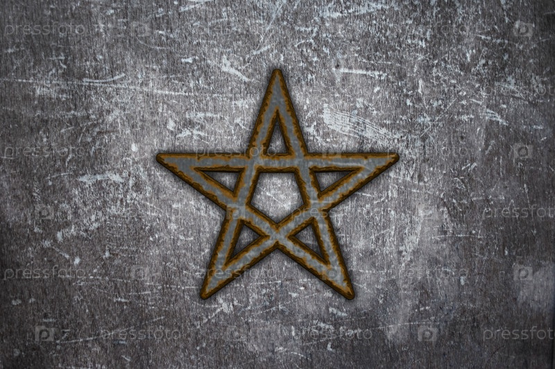 Ржавый пентакль на сером фоне - 3d иллюстрация