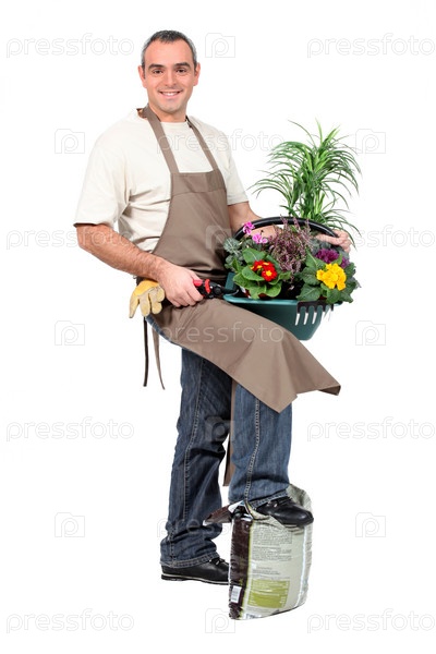 Улыбающийся садовник на белом фоне