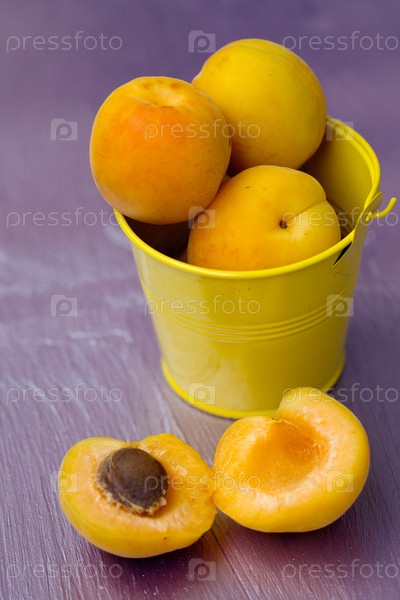 Абрикосы в небольшом желтом ведре