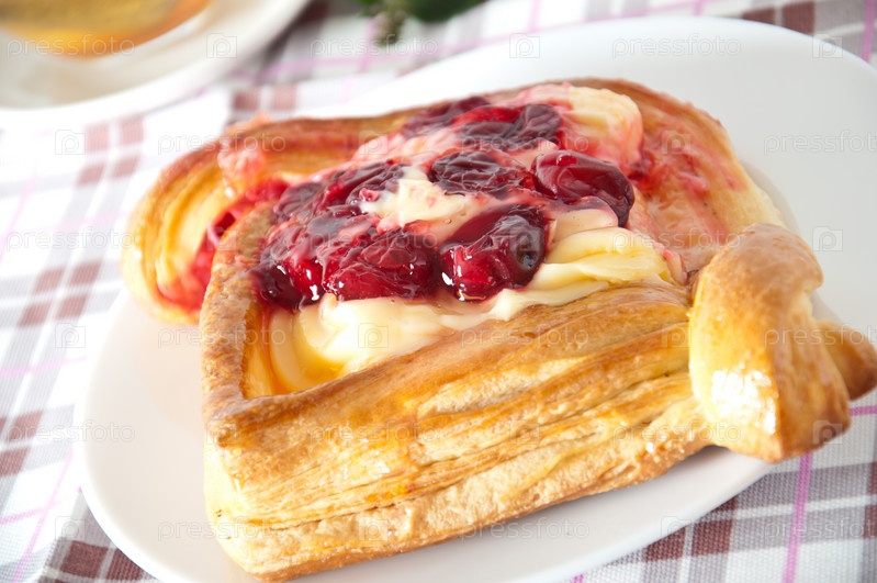 Вкусная вишневая выпечка из слоеного теста с кремом