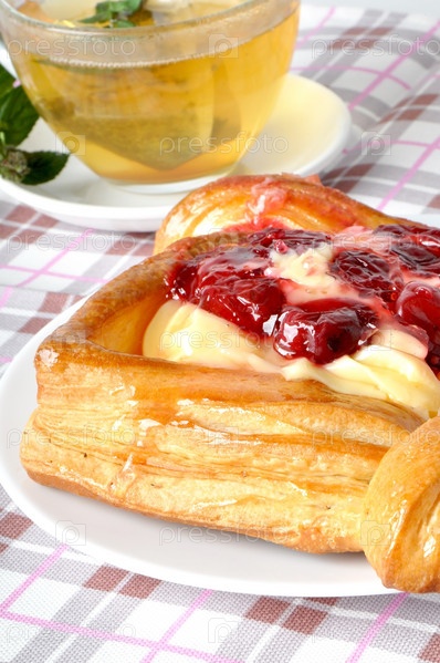 Вкусная вишневая выпечка из слоеного теста с кремом
