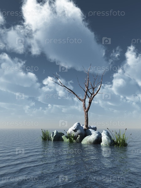 Мертвое дерево в океане - 3d иллюстрация