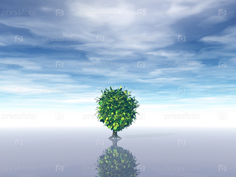 Одинокое дерево под облачным небом. 3d Иллюстрация