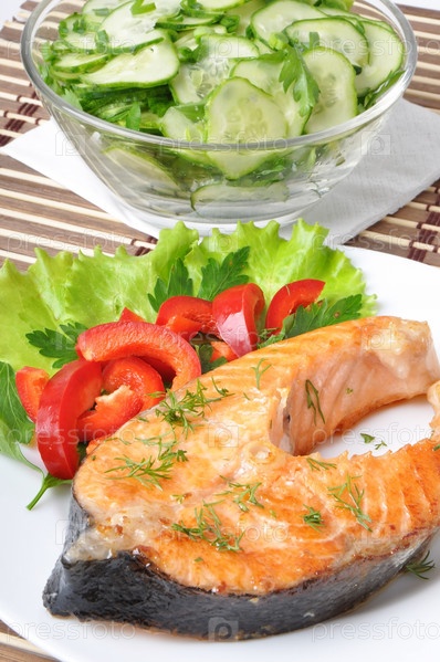Рыбное блюдо - лосось на гриле с овощами