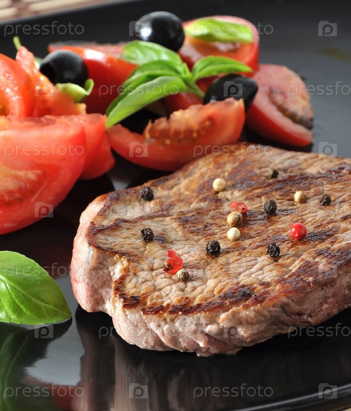 Говяжий стейк на гриле со свежими овощами