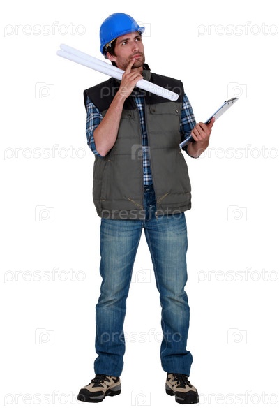 Строитель на белом фоне