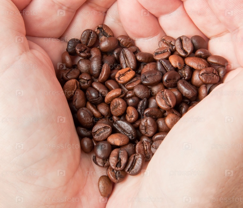 Сердце из кофейных зерен в руках