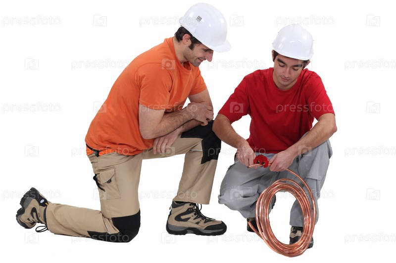 Два сантехника готовят медные трубы