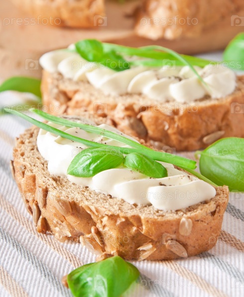 Бутерброды с сыром, базиликом и зеленым чесноком
