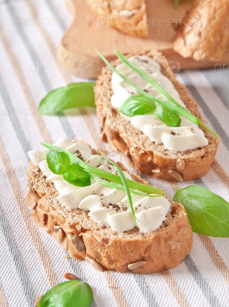 Бутерброды с сыром, базиликом и зеленым чесноком