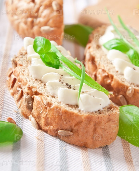 Бутерброды с сыром, базиликом и зеленым чесноком