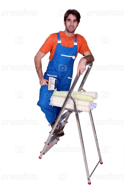 Человек с обоями и кистью
