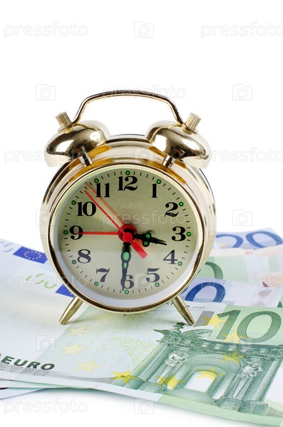 Будильник и банкноты евро