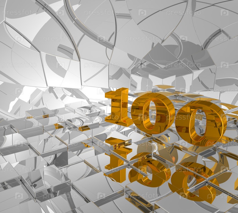 Кубический фон и золотая цифра 100. 3d Иллюстрация