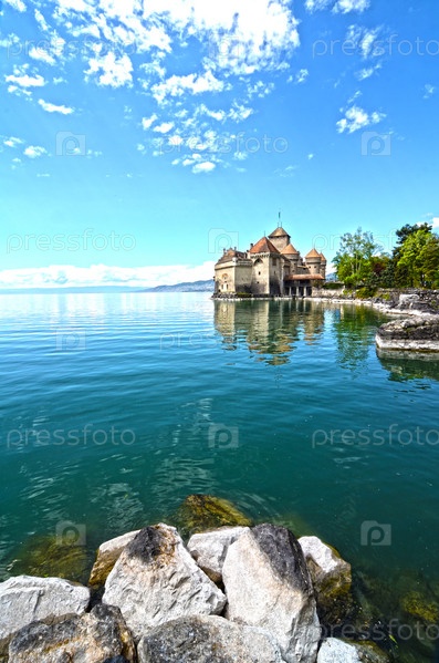 Шильонский замок на берегу Женевского озера в Швейцарии