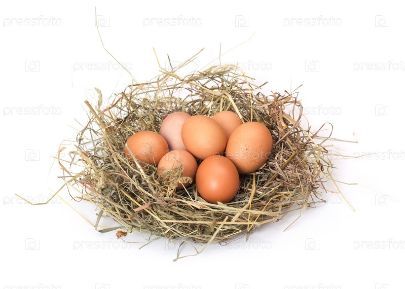 Коричневые яйца в гнезде