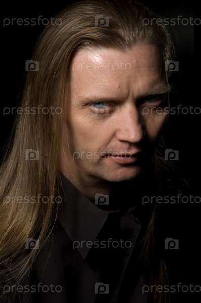 Портрет серьезного человека с длинными волосами