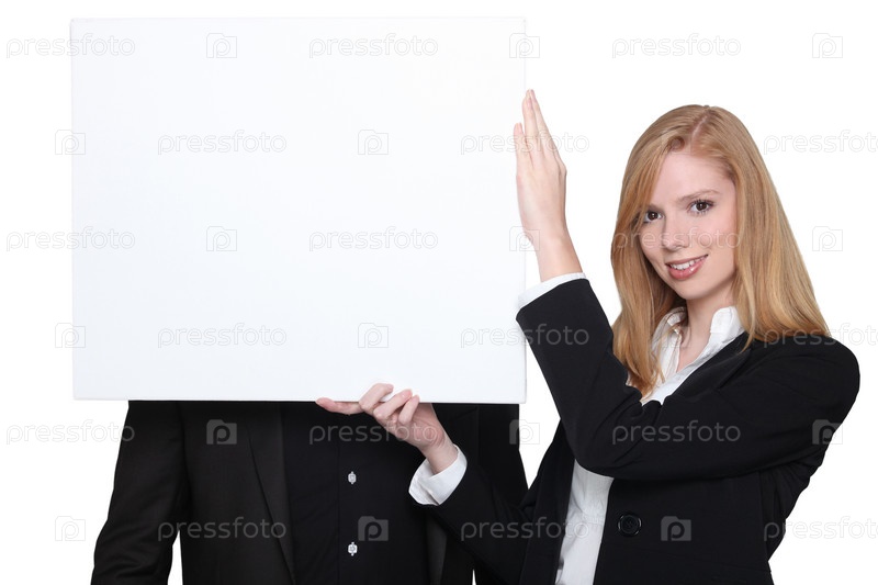 Бизнес-леди с пустым баннером